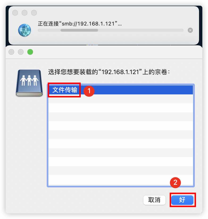 [TOC] #### 前言 --- 温馨提示:mac 电脑和 windows 电脑必须处于同一局域网下 本文根据创建共享文件夹的方式实现文件互相传输,所以两台电脑必须处于同一网络 windows 创建共享文件夹,mac 电脑通过 windows 的局域网 IP 进行连接并访问该共享文件夹 #### 创建共享文件夹 --- 首先,在 windows 电脑桌面创建一个文件夹 选中该文件夹,右键单击【属性】,打开后选择【共享】,然后点击【高级共享】  勾选上【共享此文件夹】,再点击【权限】  选择【Everyone】,将下面 Everyone 的权限允许都勾选上,将过程中出现的弹窗都先点击【应用】,再点击【确定】  查看 windows 电脑的局域网 IP,也就是 IPv4 地址,接下来的步骤中会用到  #### mac 连接共享文件夹 --- 打开【访达】,点击菜单栏中的【前往】,然后点击【连接服务器】  输入局域网 IP,点击【连接】  接下来会弹出以下界面,输入 windows 的用户名和开机密码 比如:【名称:Administrator 密码:123456】,windows 电脑必须设置密码,否则无法进行下一步  在接下来的界面中选中共享文件夹名称,然后点击【好】  最后,在访达中可以看到该共享文件夹,就可以通过该文件夹进行文件相互传输